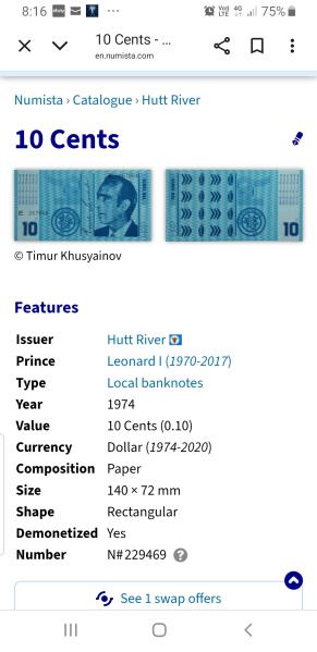 Hutt নদী Province (Micronesia, Dead Country) ১০ Cents - Leonard I ১৯৭৪ AUNC Condition