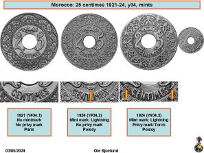French মরক্কো ২৫ Centimes (১৯২৪) - Scarce - Poissy Mint Mark