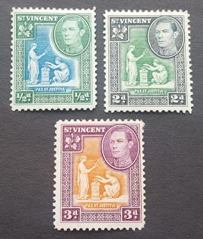 St Vincent George VI Definitive ১/২ P, ২p এবং ৩p, MH