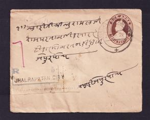 India King George V - One Anna Envelope Registered Used from Jhalrapatan City 1926