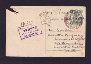 ভারত King George VI - Half Anna Surcharged Rubber Print Post Card Used From Calcutta ১৯৪৭