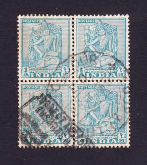 India 1 Anna Bodhisattva Block of 4 Stamps 1950, Used