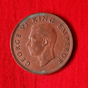নিউজিল্যান্ড ১ Penny - George VI ১৯৪৫ - ব্রোঞ্জ মুদ্রা - ব্যাস ৩১ মিমি