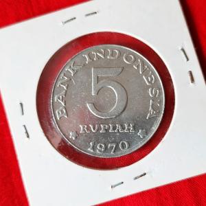ইন্দোনেশিয়া ৫ রুপিয়াহ ১৯৭০ - অ্যালুমিনিয়াম মুদ্রা - ব্যাস ২৮.৫ মিমি