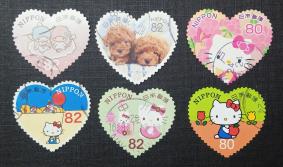 জাপান - Odd (Hearts) Shaped Greetings Stamps, ৬v Very Fine Used
