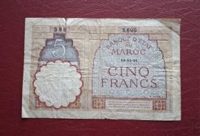 মরক্কো (French) ৫ Francs ১৯৪১ Fine Condition