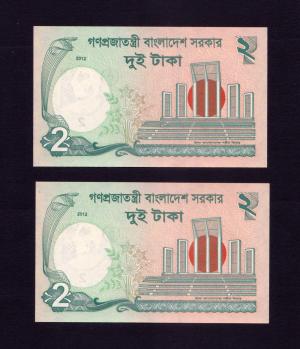 Bangladesh - 2012 - Muhammad Tariq 2 Taka UNC Condition - Consecutive Number Pair