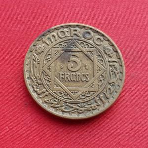 Morocco 5 Francs - Mohammed V 1365 (1946 Ad) - Aluminium Bronze Coin - Dia 31 mm