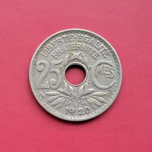 France 25 Centimes 1920 - Copper-Nickel Hole Coin - Dia 24 mm