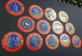 Thailand 13 Different Round Shape Gold Foil Stamps Used - Lot 3