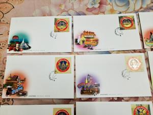 Thailand - Gold Foil Round Shape Stamps Complete Set of 10 FDCs 2010