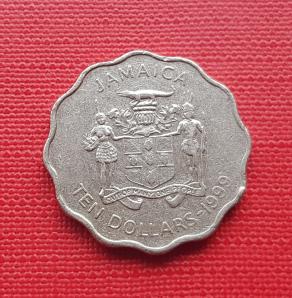 Jamaica 10 Dollars Scalloped 1999, Nickel Plated Steel. Dia 24 mm