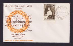 India 1969 Former President of India - Dr. Zakir Husain FDC