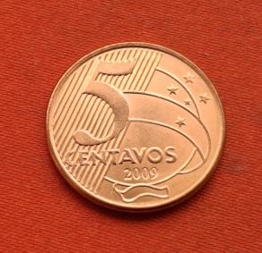 Brazil 5 Centavos Tiradentes 2009 Copper Plated Steel Dia 22 mm