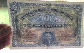 The Commercial Bank of Scotland £5 Five Pound 1943, X Prefix, VF Condition
