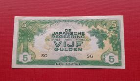 Netherlands Indies (Ww2, Japanese Occupation) 5 Gulden 1942, XF Condition