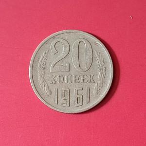 Soviet Union (Russia) 20 Kopecks 1961 - Nickel Brass Coin - Dia 21.8 mm