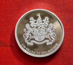 Australia 175 Years of Melbourne: Flinder St. Rail Station, Pure Silver Plated Medal, 40.Mm