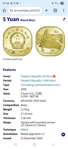 China 5 yuan squre. Brass. 27.19 mm.