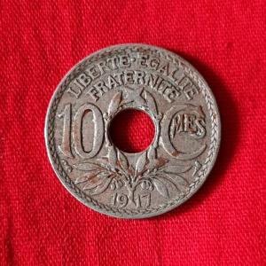France 10 Centimes 1917 - Copper-Nickel Hole Coin - Dia 21 mm