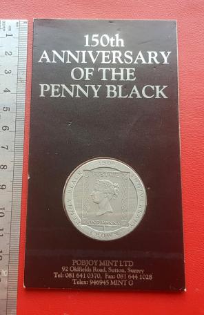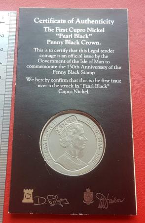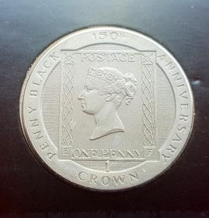 Isle of Man 1 Crown Elizabeth II - 150th Anniversary Penny Black; Copper-Nickel Coin with Coa