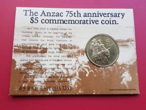 Australia 5 Dollars - Elizabeth II 1990 - ANZAC 75 Years - Aluminium-Bronze Coin - Dia 38.74 mm with Official Mint Folder