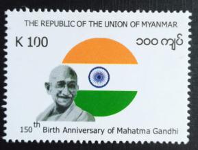 Myanmar - 2019 The 150th Anniversary of the Birth of Mahatma Gandhi, 1869-1948, 1v MNH Complete Set.
