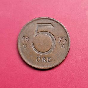Sweden 5 Ore 1973 - Bronze Coin - Dia 18 mm