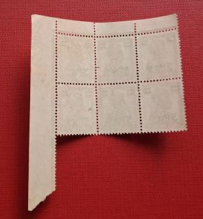 India (British) 3 Pies Overprint-George Vl, Corner Blk of 6, MNH