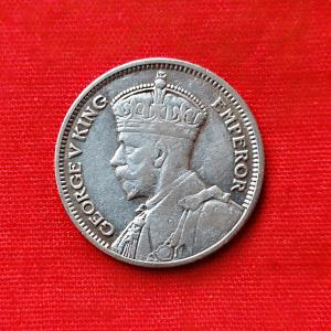 New Zealand 6 Pence - George V 1934 - Silver (.500) Coin - Wt 2.83g - Dia 19.3 mm