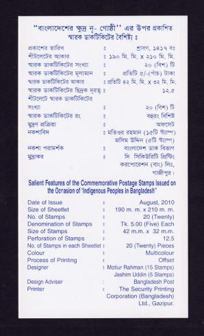 Indigenous Peoples in Bangladesh set of 4 FDCs with 1pcs Data Card 2010