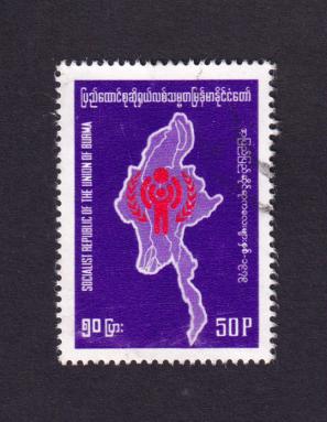 Burma 50p IYC Emblem in Map of Burma Stamps 1979, Used
