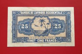 French West Africa 25 Francs 1942, VF Condition