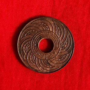 Thailand 1 Satang - Rama VIII 1939 - Bronze Hole Coin - Dia 22.4 mm