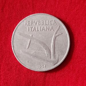 Italy 10 Lire 1951 - Aluminum Coin - Dia 23.25 mm