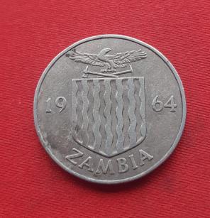 Zambia 1 Shilling 1964 - Nickel-Brass Coin - Dia 23.6 mm