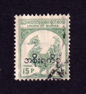 Burma 1953 15p Overprint - Hamsa Mythical Bird and Mount of Brahma Stamps, Used