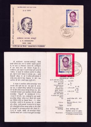 India 1970 Conjeevaram Natrajan Annadurai FDC with Brochure