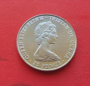 Tristan Da Cunha 25 Pence - Elizabeth II Royal Wedding 1981 - Copper-Nickel Crown Size Coin - Dia 38.61 mm