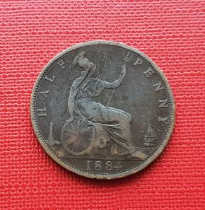 UK ½ Penny - Queen Victoria 1884 - Bronze Coin - Dia 25.56 mm