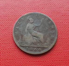 UK ½ Penny - Queen Victoria 1866 - Bronze Coin - Dia 25.56 mm