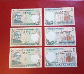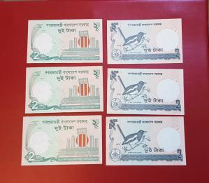 Bangladesh 2 Taka Banknotes, 2010-11, 6 Pcs, UNC