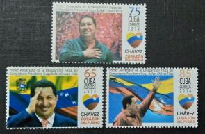 Cuba - 2014 The 1st Anniversary of the Death of President Hugo Chavez Frias, 1954-2013, 3v MNH Complete Set.