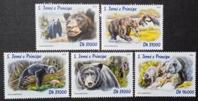 S. Tome & Principe - 2016 Fauna-Flora, Bear, 5v MNH Complete Set.