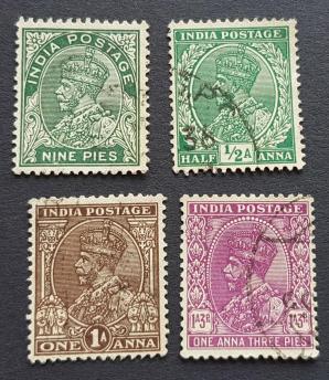 India (British) Grorge V Definitives, 4v, 9p, 1/2 A, 1a, & 1a3p