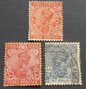 India (British) Grorge V Definitives, 3v, 2 A, 3a, & 3a6p, Used